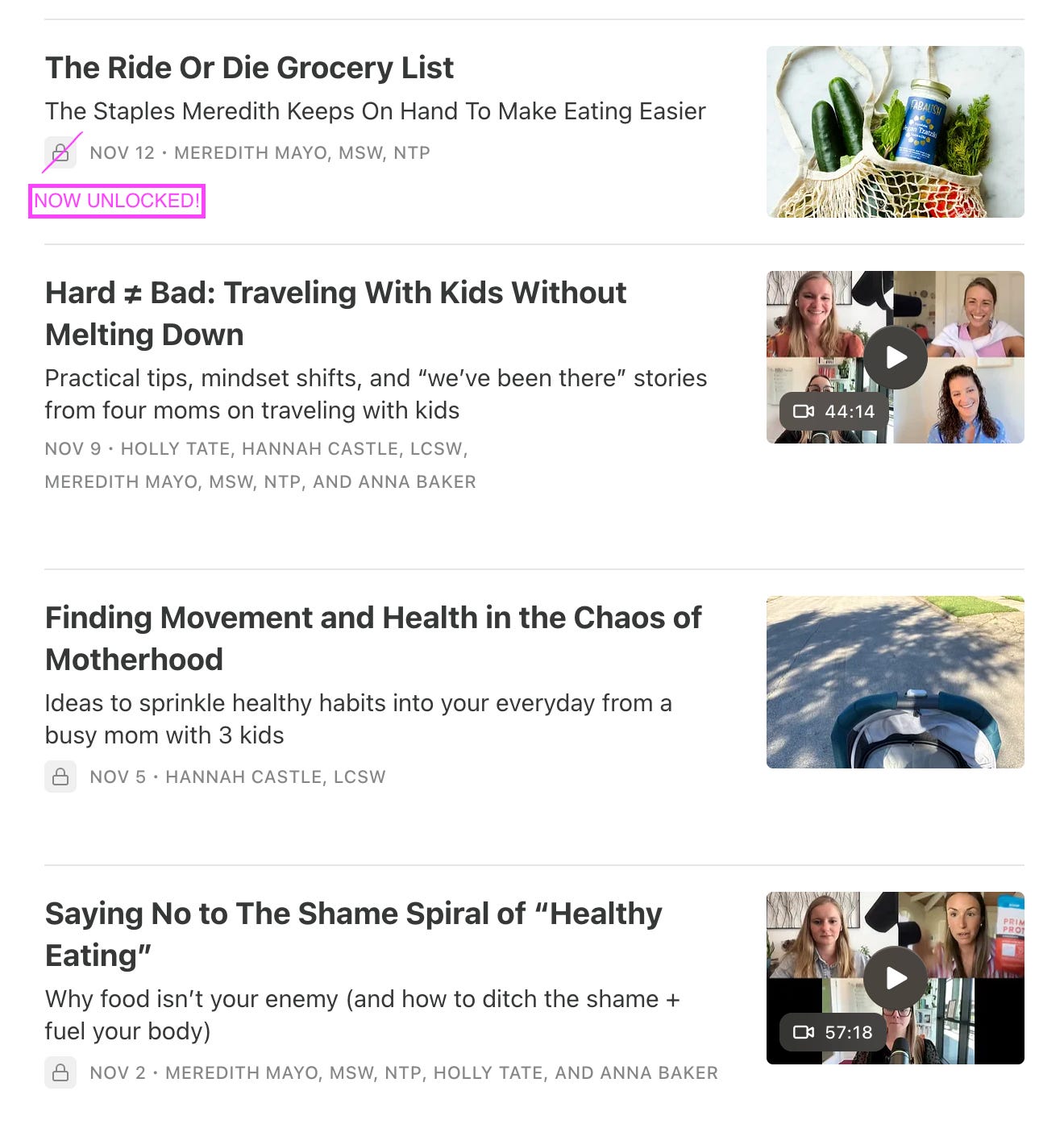 You’ll find podcasts to listen to or watch (or continue listening wherever you listen to podcasts) PLUS articles that we refer to as “resources” like: